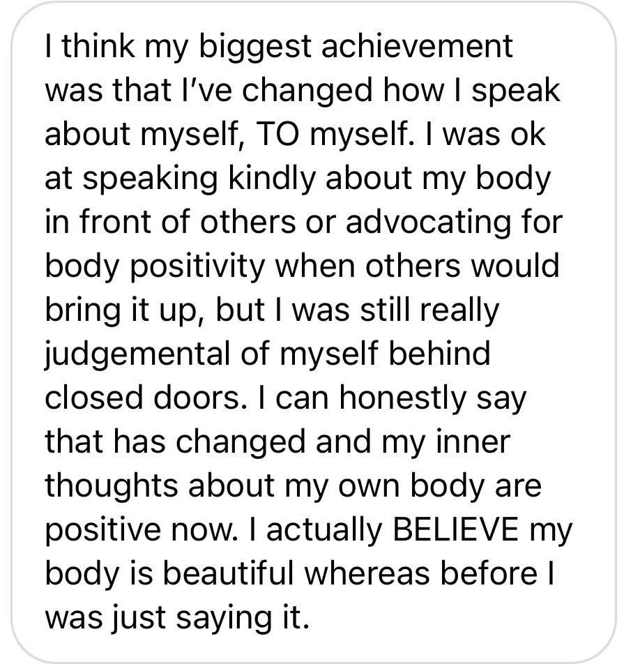 ✔️ Carry out my 5-step process to eliminate the limiting beliefs about your body
